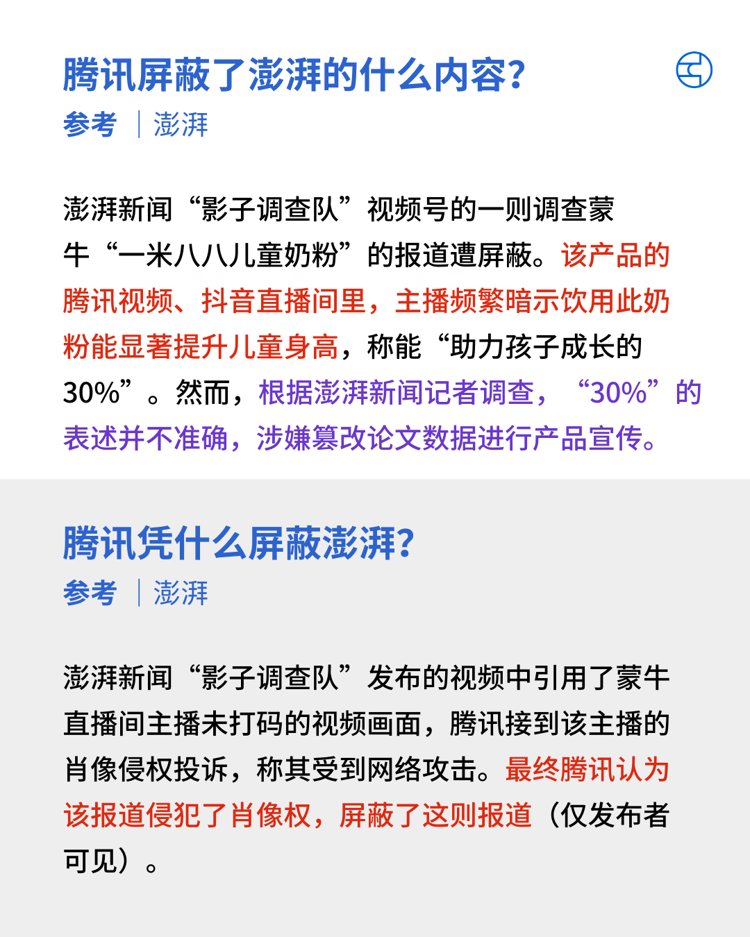 “一米八八儿童奶粉”调查报道遭屏蔽,澎湃点名批评腾讯