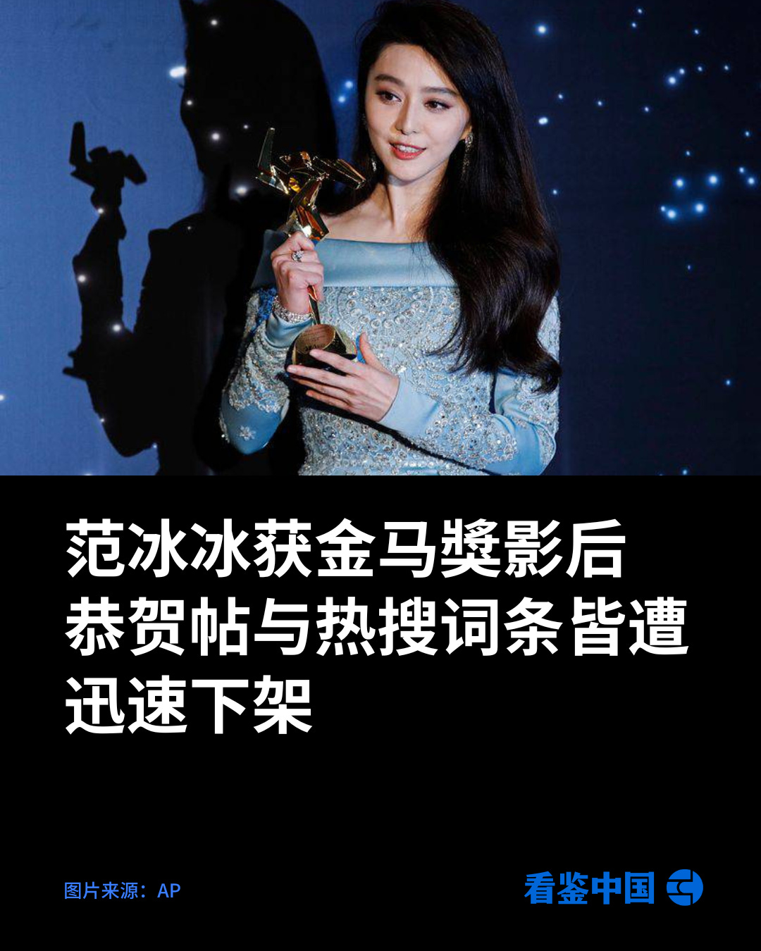 范冰冰获金马獎影后 恭贺帖与热搜词条皆遭迅速下架