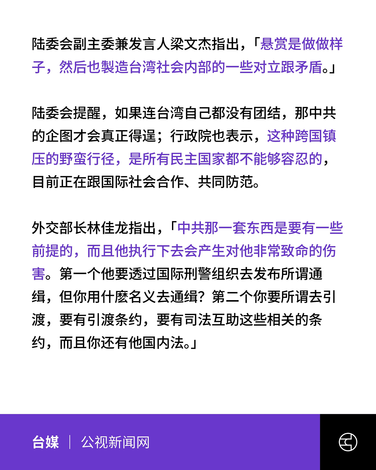 《公视新闻网》中共悬赏网红八炯、闽南狼 我陆委会:製造台湾内部对立