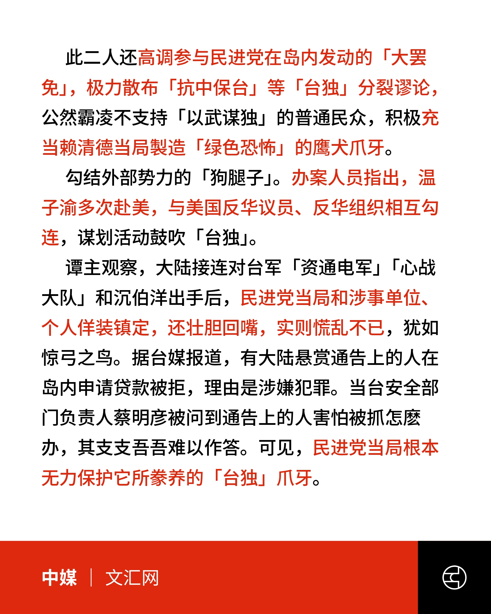 《文汇网》日月谭天: 公安机关再出手 大陆依法惩「独」连番重拳震撼岛内