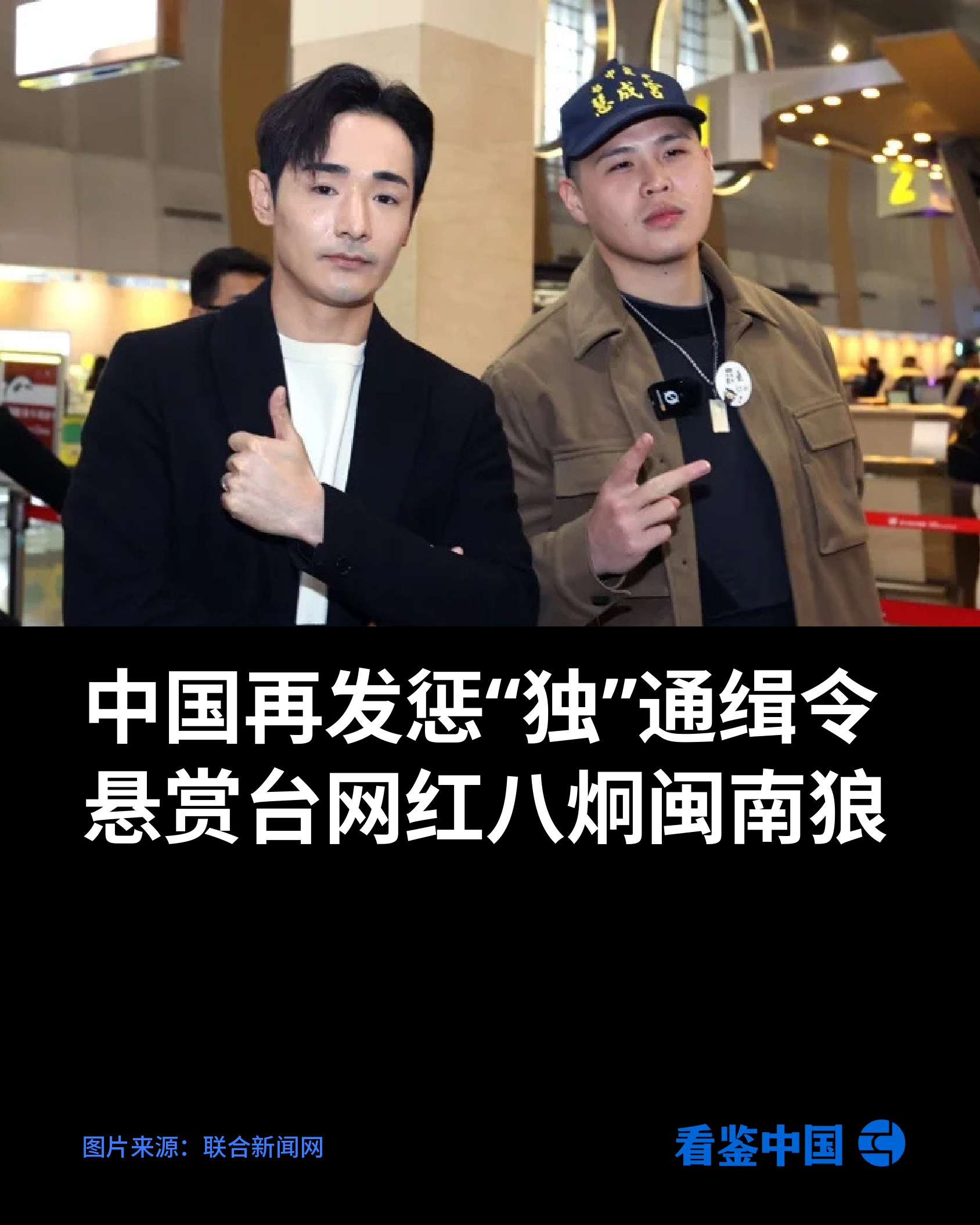 中国再发惩“独”通缉令 悬赏台网红八炯闽南狼