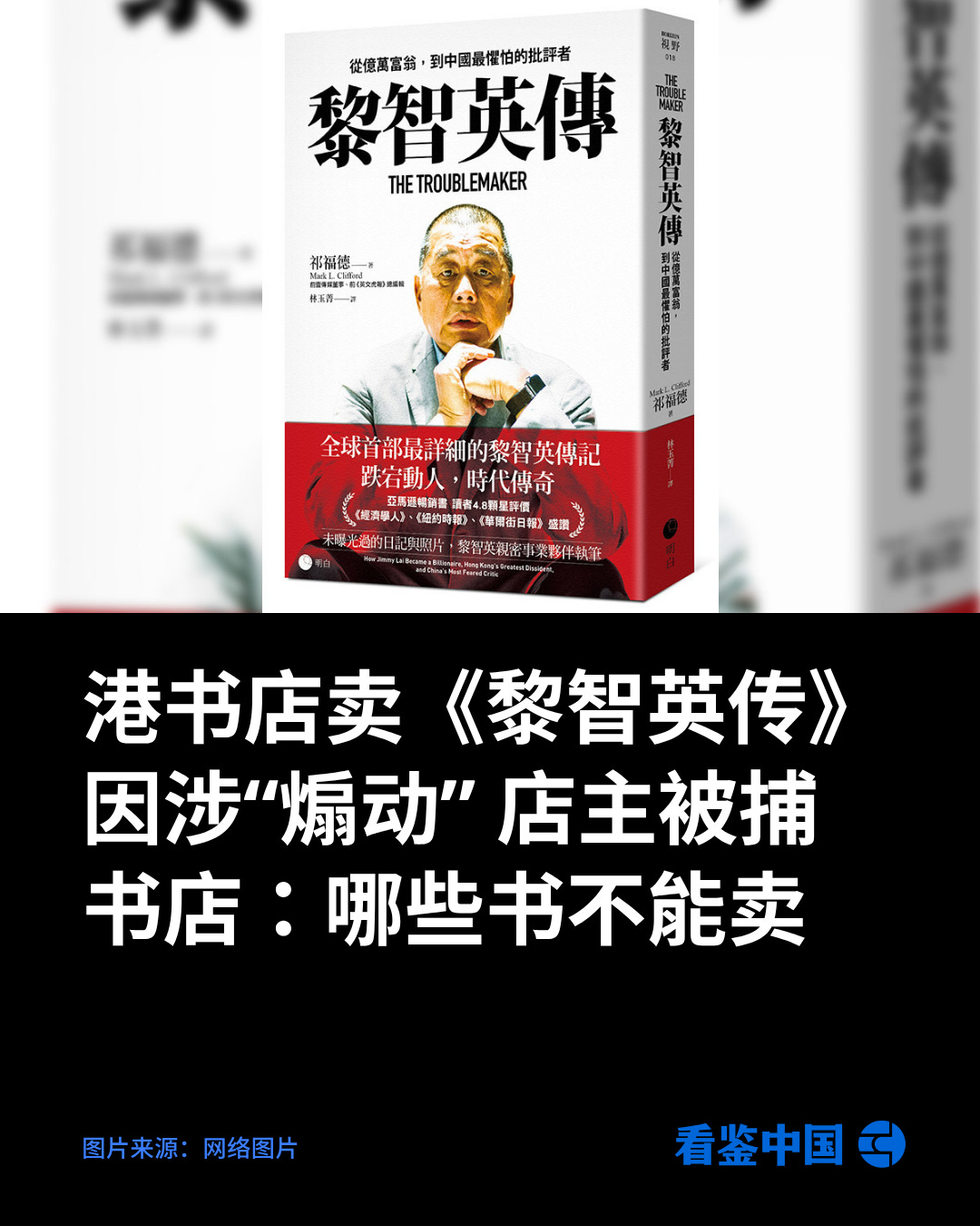 港书店卖《黎智英传》 因涉“煽动” 店主被捕 书店:哪些书不能卖